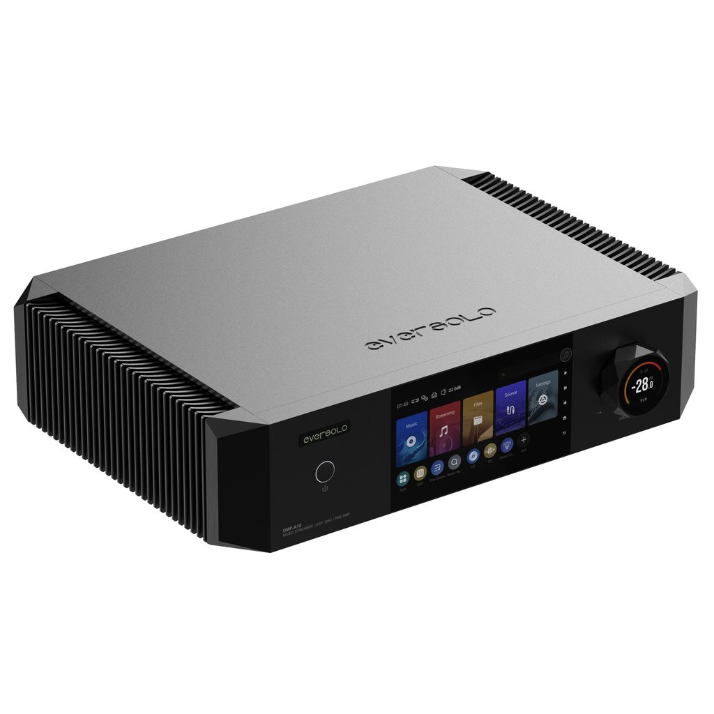 Eversolo DMP-A10 predstavuje vrchol portfólia značky a absolútnu špičku v kategórii all-in-one hudobných streamerov. A10 kombinuje precízny streamovací transport, referenčný DAC a plne symetrický predzosilňovač. Celé šasi so šírkou 430 mm je vyrobené pomocou presnej CNC technológie a predstavuje spojenie industriálnej elegancie s funkčnou mechanickou stabilitou.