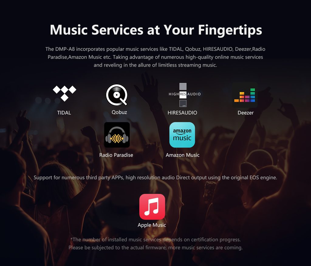 EverSolo DMP-A8 predstavuje kompletné riešenie, ktoré v jedinom šasi kombinuje špičkový hudobný streamer, precízny DAC a plne symetrický predzosilňovač. Srdcom prístroja je vlastný audio engine EOS (Eversolo Original sampling-rate), ktorý obchádza všetky obmedzenia systému Android (SRC) a umožňuje priamy audio výstup z aplikácií tretích strán, vrátane Apple Music v Hi-Res kvalite.