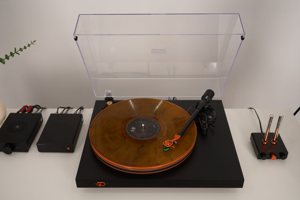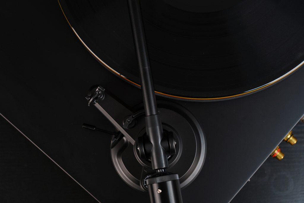Elegantný gramofón s remienkovým náhonom, hliníkovým ramienkom a masívnym akrylátovým tanierom.