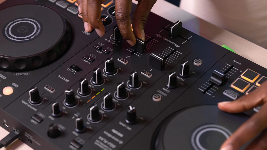 Neviete ako hudbu miešať? Nebojte sa, môžete začať ihneď s funkciou Smart Fader, ktorá automaticky upravuje hlasitosť, basy a BPM hudby, takže môžete plynule prechádzať z jednej stopy na druhú jednoduchým pohybom faderov kanála alebo crossfaderu. Navyše so Smart CFX môžete jednoducho otočiť gombíkom a použiť kombináciu efektov, ktoré dodajú zvuku na dramatičnosti.