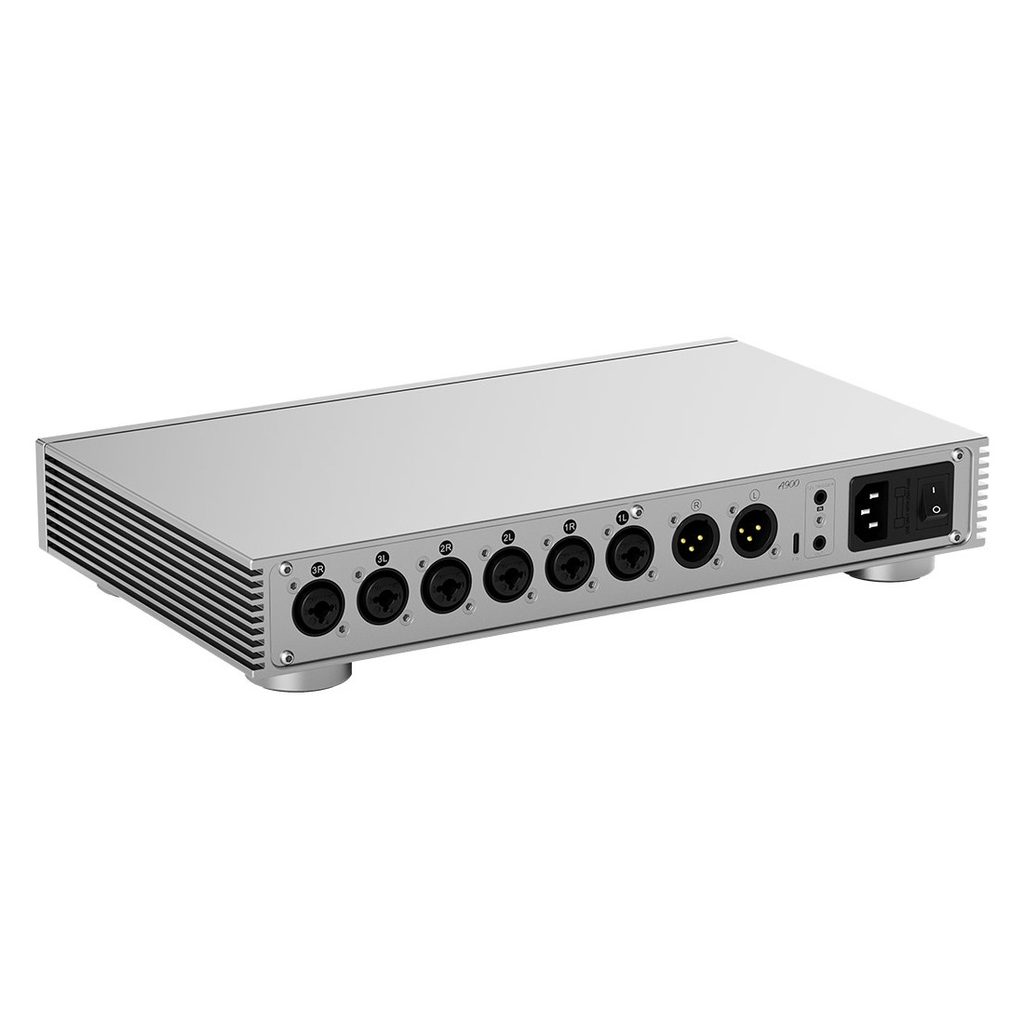 Zadný panel zosilňovača Topping A900 je osadený tromi kombinovanými symetrickými vstupmi s vysoko kvalitnými konektormi Neutrik (XLR + 6,35mm jack). Táto konštrukcia zaisťuje širokú kompatibilitu s profesionálnym audio vybavením a umožňuje flexibilné použitie v rôznych scenároch. Na čelnom paneli je k dispozícii šesť výstupov pre slúchadlá, ktoré zahŕňajú kombinované výstupy XLR a 6,35mm jack, symetrické 4-pinové XLR a 4,4mm jack. Tieto výstupy využívajú prémiové konektory Neutrik a Pentaconn a je možné ich konfigurovať nezávisle alebo na simultánne použitie. A900 môže tiež fungovať ako čistý predzosilňovač, ktorý s hodnotou THD+N nižšou ako 0,000055 % predstavuje ideálneho partnera pre akýkoľvek koncový zosilňovač.