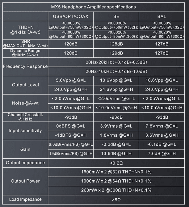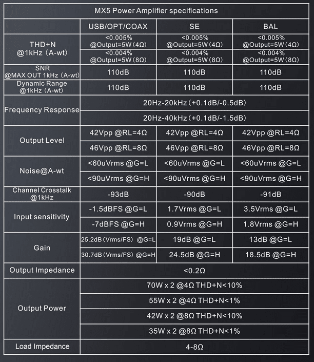 Sluchátkový zesilovač / výkonový zesilovač / DA převodník / Bluetooth přijímač v jediném přístroji. Výkon 2x 70 W ve třídě D, 2x 1600 mW pro sluchátka. Vstupy Bluetooth, USB, Optika, Coax, Aux a symetrické TRS. Dálkové ovládání, vestavěný ekvalizér.