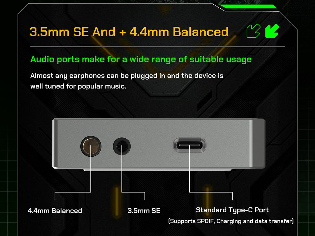 Moderný HiRes audio prehrávač v priemyselnom dizajne. Otvorený Android 12, DAC ESS 4x ES9018C2M, procesor Qualcomm Snapdragon 665, výstupy Jack 3,5 a 4,4 mm, výkon zosilňovača triedy A až 525 mW @ 32 ohmov, podpora DSD a MQA, výdrž batérie až 11 hodín, HiBy OS a bitovo dokonalé prehrávanie, obojsmerné Bluetooth 5. 0 s kodekmi UAT, aptX HD a LDAC, streamovanie cez WiFi a offline úložisko, hliníkové telo s pútkom na zavesenie. TPU puzdro je súčasťou balenia.