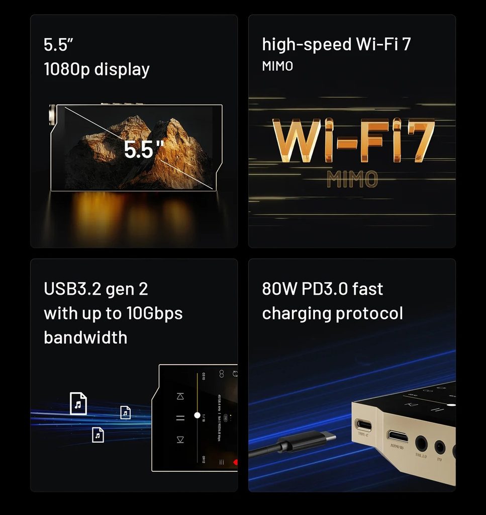 | Výstupy | Jack 3.5 mm, Jack 4.4 mm, Jack 4.4 mm Line Out, S/PDIF, USB Audio, I2S-LVDS |