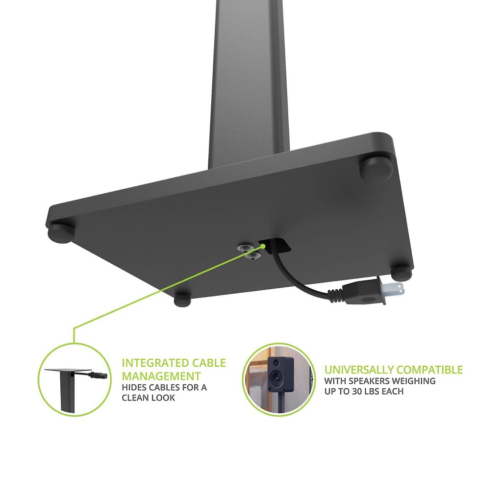 Umiestnenie reproduktorov vo výške uší a mimo predmetov, ktoré by mohli spôsobovať odrazy, vám umožní dosiahnuť ten najlepší zvuk z vašich reproduktorov. Zlepšite svoj zvukový zážitok s podlahovými stojanmi na reproduktory ST28, ktoré sú navrhnuté pre regálové a stojanové reproduktory do 13,6 kg. Stojany sú vyrobené z odolnej ocele a základne z MDF dosiek pre zvýšenie hmotnosti a stability. Pre tvrdé podlahy sú súčasťou gumové nožičky, pre koberce sú určené nožičky s kovovými hrotmi. Duté jadro ukryje drôty a nenápadný dizajn týchto stojanov doplní akýkoľvek domáci interiér. Reproduktorové stojany série ST sa predávajú v páre a sú k dispozícii vo výškach 28” (71 cm) alebo 34” (86 cm).