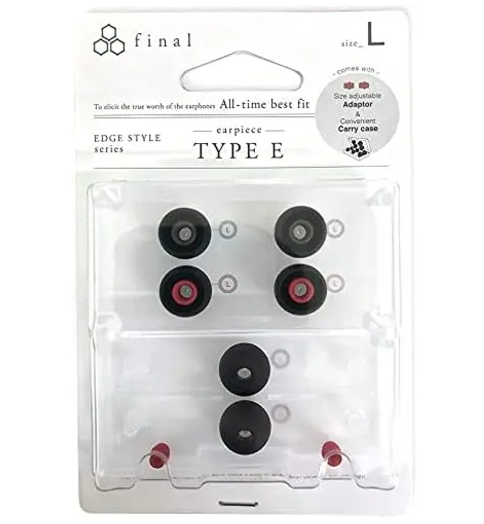 Náhradné univerzálne "Type-E" nástavce pre slúchadlá do uší od spoločnosti Final Audio. Veľkosť L, 3 páry v balení, farba čierna.