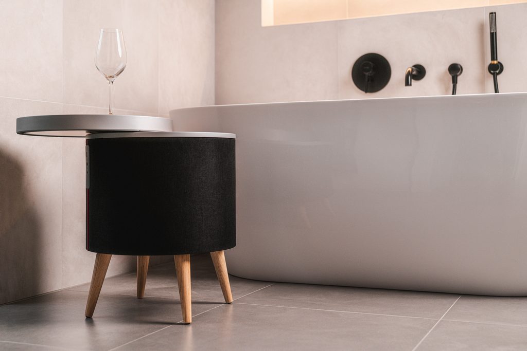 Navonok elegantný interiérový doplnok, ale vnútri sofistikovaný trojpásmový audio systém s integrovaným subwooferom a priestorovým zvukom, to je reproduktorový stolík Intezze VIBE.