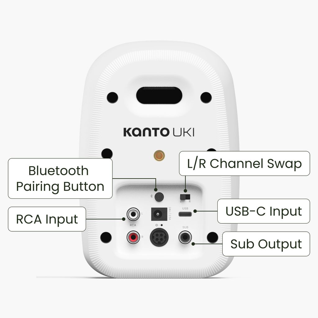 Smart Sub Integration: Reproduktory disponujú inteligentnou automatickou výhybkou. Po pripojení subwoofera Uki automaticky presmeruje frekvencie pod 100 Hz do subwoofera, čím uvoľní svoje meniče pre čistejšie stredy, presnejšie transienty a zvuk s minimálnym skreslením.