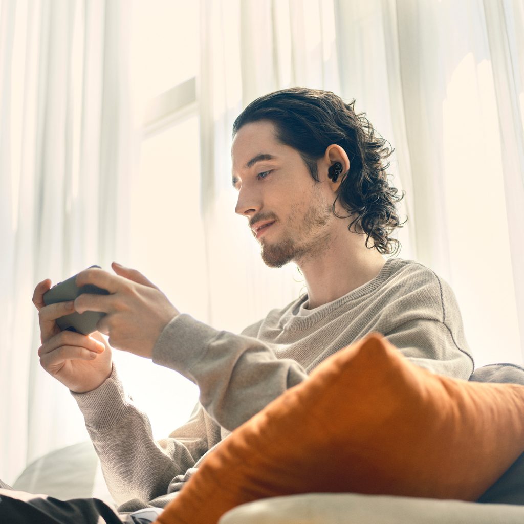 Okrem výnimočne vyspelého ladenia však slúchadlá dokážu generovať aj príjemné ticho. Systém Hybrid ANC možno kombinovať s funkciami Hear-through a Talk-through pre príjemnejšiu komunikáciu s okolím. Aj so slúchadlami v ušiach môžete celkom zreteľne počuť pouličnú premávku alebo letiskové hlásenia.