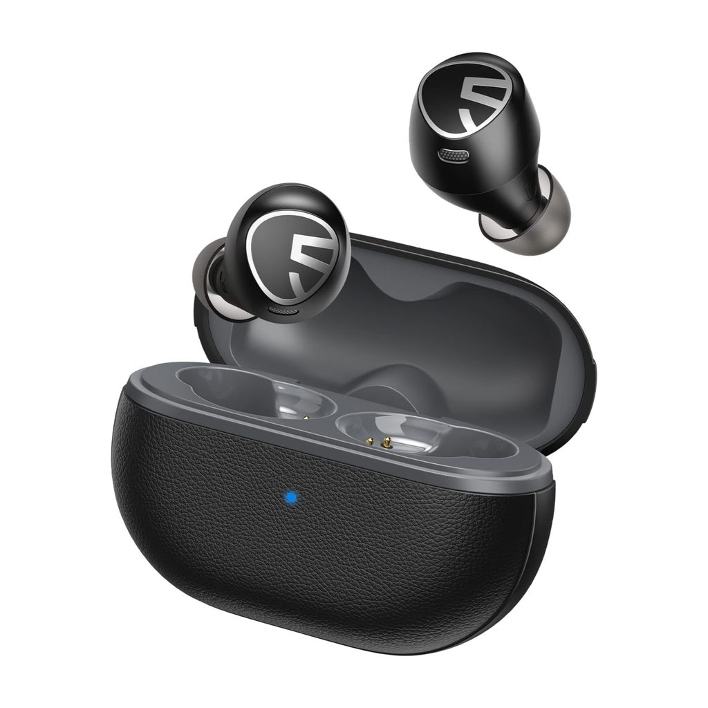 Bezdrôtové slúchadlá TWS s výdržou batérie 8 hodín na jedno nabitie, pri použití dobíjacieho puzdra až 30 hodín. Dotykové ovládanie vrátane hlasitosti. Prenos cez Bluetooth 5.1 s kodekmi SBC. Nabíjanie cez USB-C, luxusná povrchová úprava puzdra pripomínajúca kožu.