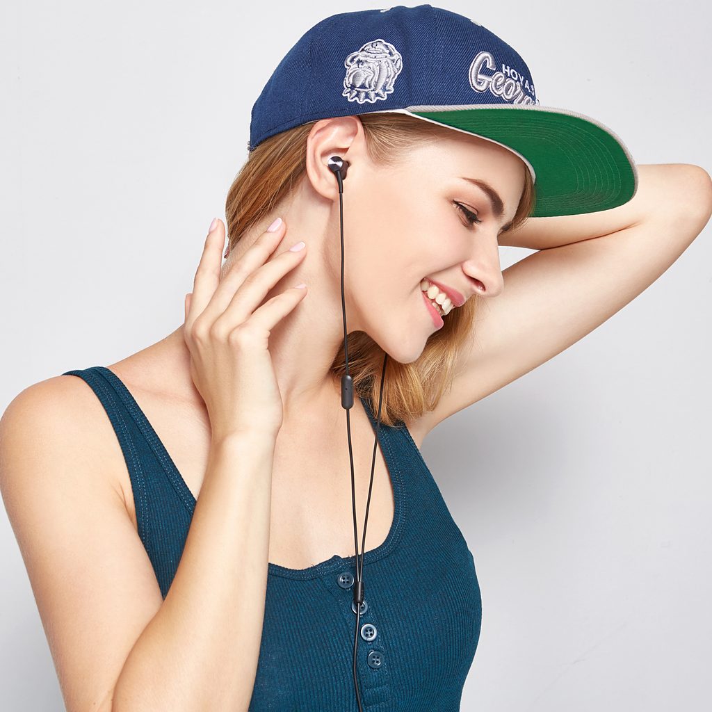 Ergonomické štuple s kovovým telom a výrazne nakloneným krčkom pre lepšie usadenie v uchu. Dvojvrstvové meniče (titán, polymér) a univerzálne jednotlačítkové ovládanie s mikrofónom. Rozsah 20 - 20.000 Hz.