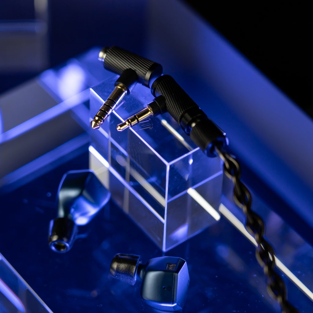 HiFi hliníkové slúchadlá InEar s dynamickými meničmi a odpojiteľným káblom s vymeniteľnými konektormi.