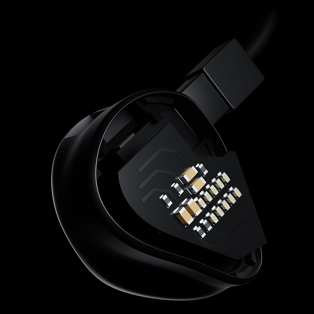 Laditeľné InEar slúchadlá s 10 mm dynamickým meničom DLC a odpojiteľným káblom 3,5 mm Jack.