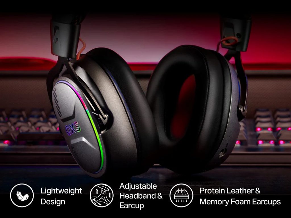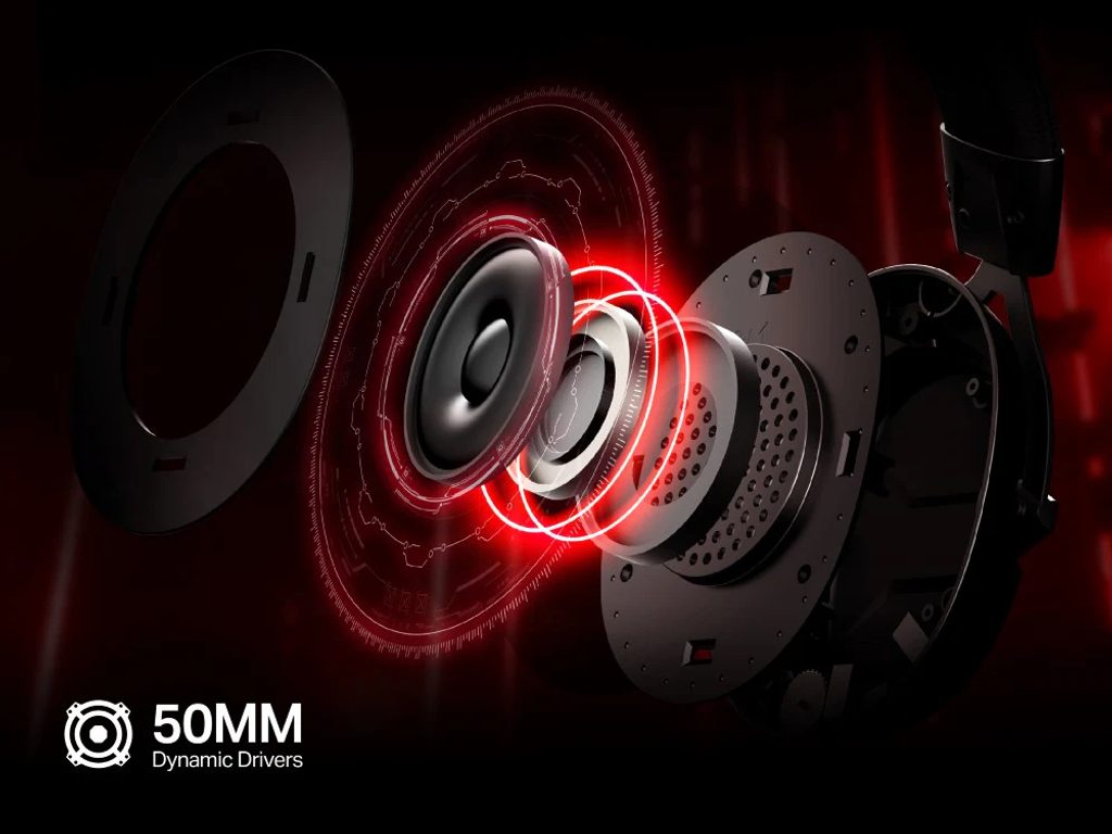Herné slúchadlá s 50 mm dynamickými meničmi a pokročilou virtuálnou technológiou priestorového zvuku 7.1, bezdrôtový USB prijímač s frekvenciou 2,4 GHz a ultra nízkou latenciou pod 25 ms, duálne ENC mikrofóny, RGB podsvietenie mušlí a 3 profily nastavenia ekvalizéra.