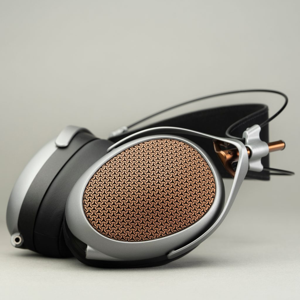 Elegantní mřížka je vyrobena z oceli, ale samotný skelet sluchátek je tvořen lehounkým hořčíkem. Pružný hlavový most je vyroben z vysoce odolného titanu. Nadýchané objemné náušníky z umělé kůže jsou fixovány pomocí magnetů a jejich případná výměna je tak otázkou vteřin.