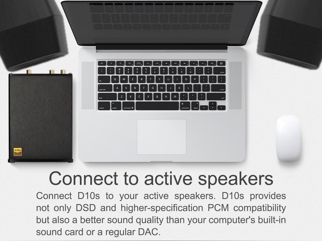 Kvalitní stolní D/A převodník s USB vstupem. Výstupy Line Out, Optický a Coax. D/A čip ES9038Q2M, PCM až 384 kHz, DSD 256, digitální výstupy, analogový výstup pro aktivní repro. Kovové tělo.