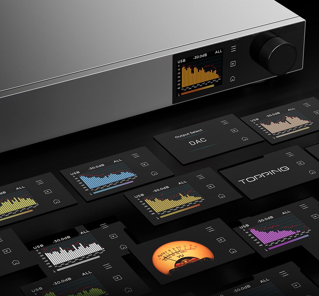 Vlajková loď mezi D/A převodníky Topping Audio, vybavená diskrétní 1bitovou PRSM architekturou.